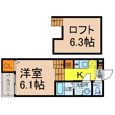 | 敷礼 | 敷無 礼1ヵ月 | 間取り | 1SK |