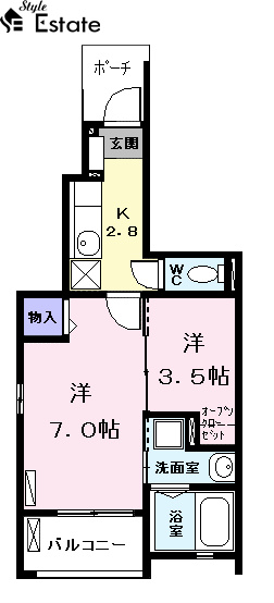 敷礼 | 敷無 礼7万円 | 間取り | 1SK |