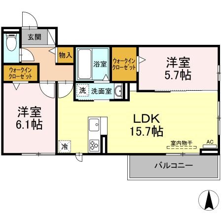 | 間取り詳細 | LDK15.7畳 洋室6畳 洋室5.7畳 | 構造 | 軽量鉄骨 |