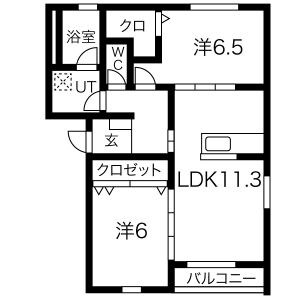| 間取り詳細 | LDK11.3畳 洋室6畳 洋室6.5畳 | 構造 | 軽量鉄骨 |
