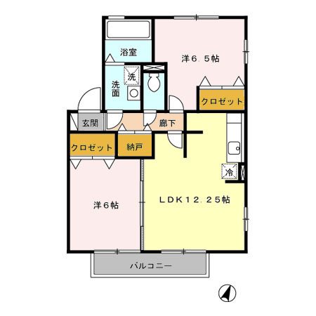 | 間取り詳細 | LDK12.25畳 洋室6畳 洋室6畳 | 構造 | 軽量鉄骨 |