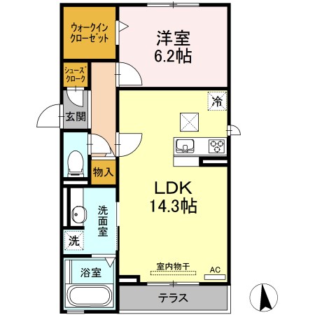 | 間取り詳細 | LDK14.3畳 洋室6畳 | 構造 | 軽量鉄骨 |