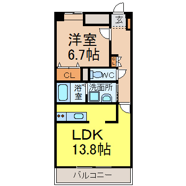 敷礼 | 敷無 礼0.5ヵ月 | 間取り | 1LDK |
