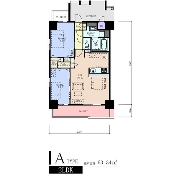2LDK(63.34m2)